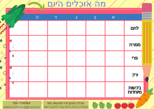 מומלץ לשבת לפני עם הילדים ולמלא ביחד. לאחר המילוי תולים על המקרר